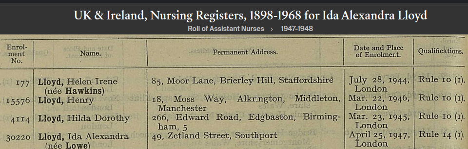 Ida fulfilled her wish and qualified as an assistant nurse in 1947 and worked at Southport Hospital.