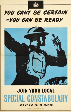 Special Constables were a volunteer police force that supplemented the regular police during WW2. They were mostly people whose age or occupation prevented them from joining the armed forces. Their responsibilities included enforcing blackouts, assisting with evacuations and air raids and visiting schools to teach children about gas drills or the danger of unexploded bombs for instance.