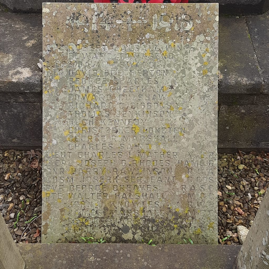 It is believed that in 1920 a decision was made not to include any names that had already been put forward by other parishes for their monuments. Any Halsall residents with connections to other parishes like Scarisbrick or residents who had moved out of the parish before WW1 were therefore not included on the Halsall monument.