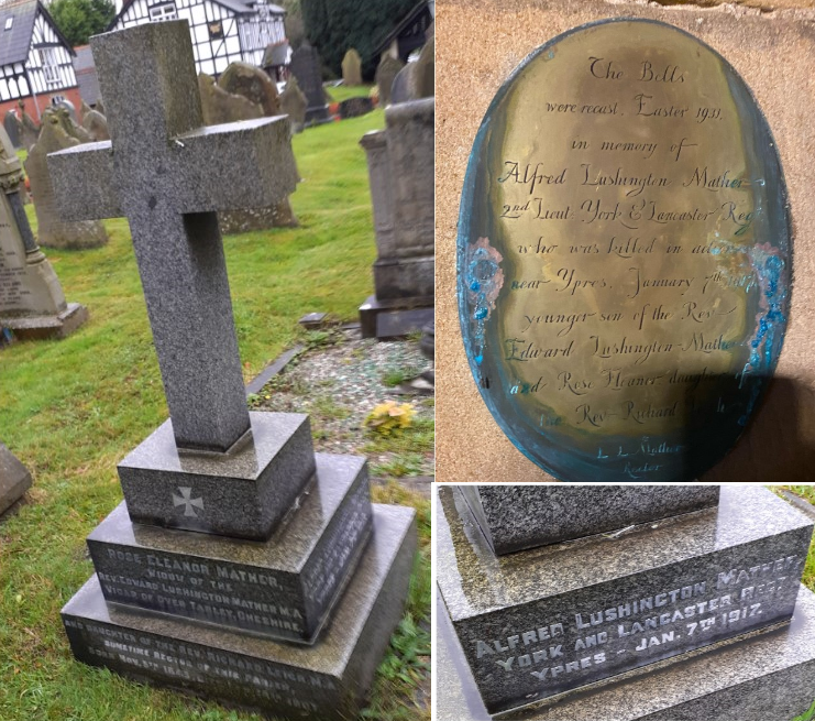 Charles Mather was baptised Alfred Lushington Mather. He enlisted using his mother’s maiden name. He was the son of Edward Lushington, a former Vicar of Halsall, and Rose Eleanor Mather.