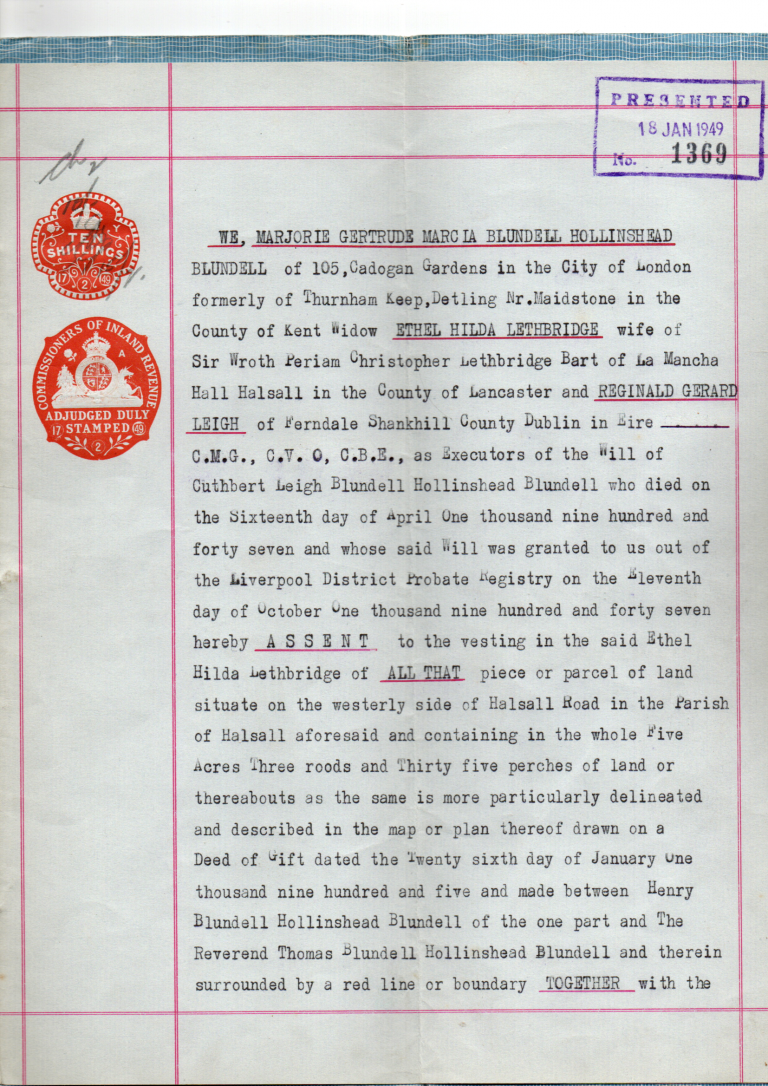 Cuthbert Blundell was married and had two daughters but after his death on 16th April 1947 , he left this land to his sister Ethel Hilda Hollinshead Blundell (1875-1951)[G47M-Y9Q].