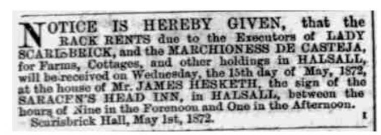 It wasn’t until the 1871 census that the name Saracen’s Head appeared. Before this it was referred to as ‘Bridge Inn’, ‘Mr. Pilkington’s house’ or ‘Mr. Hesketh’s house’ for example. On the 1847 OS map of Halsall, it is titled ‘The Warehouse Inn’ (named after the bridge crossing the canal).