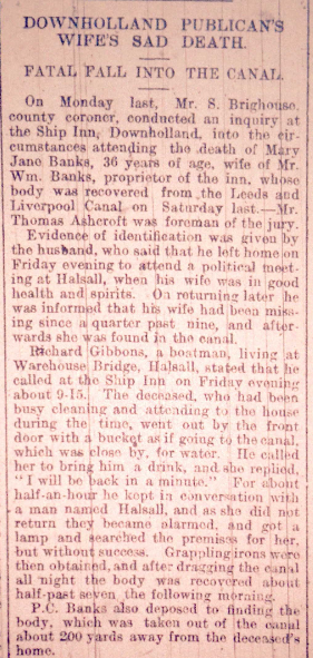 In December 1909, tragedy struck this young family when Mary Jane slipped into the Leeds & Liverpool canal and drowned.