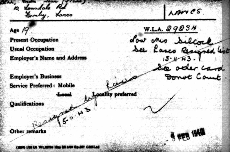 However, with the outbreak of war in 1939, she decided to apply to the Women’s Land Army (WLA) to do her bit for her King and country. Her application was successful and she joined the WLA on 3rd February 1940 being sent to work at Silcock’s Edge Farm, Sefton.