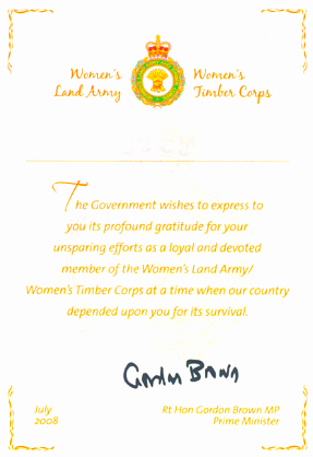 From July 2008, the government awarded the Women’s Land Army Veteran badge to Land Girls who served their country during WW1 and WW2 to thank them for their ‘unsparing efforts as a loyal and devoted member of the Women’s Land Army’.