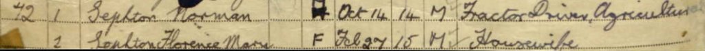 Norman Sephton GPZL-24T was born on 14th October 1914 to Annie Thomson G1DH-JYK (originally from Halsall) and William Sephton G1DH-HJ3, a farm labourer of Halsall Lane, Aughton. Norman was the youngest of 5 children, his siblings being Hilda LLMB-DFP, William GM43-PTG, Thomas G2X8-PQT and Margaret Ethel G1DH-V21.