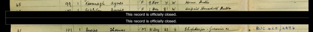 As is the way, the children grew up and left home. In the 1939 Register, William jnr was living with his wife in Conway, Wales and Norman was living with his young family in Halsall. Thomas and Margaret Ethel ( the two redacted records) were still at home with their mother Annie.