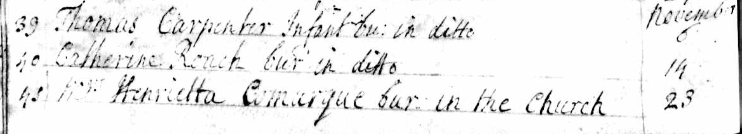 Henrietta died in 1767 and was buried inside the church of St. Mary’s, Putney on 23rd November.